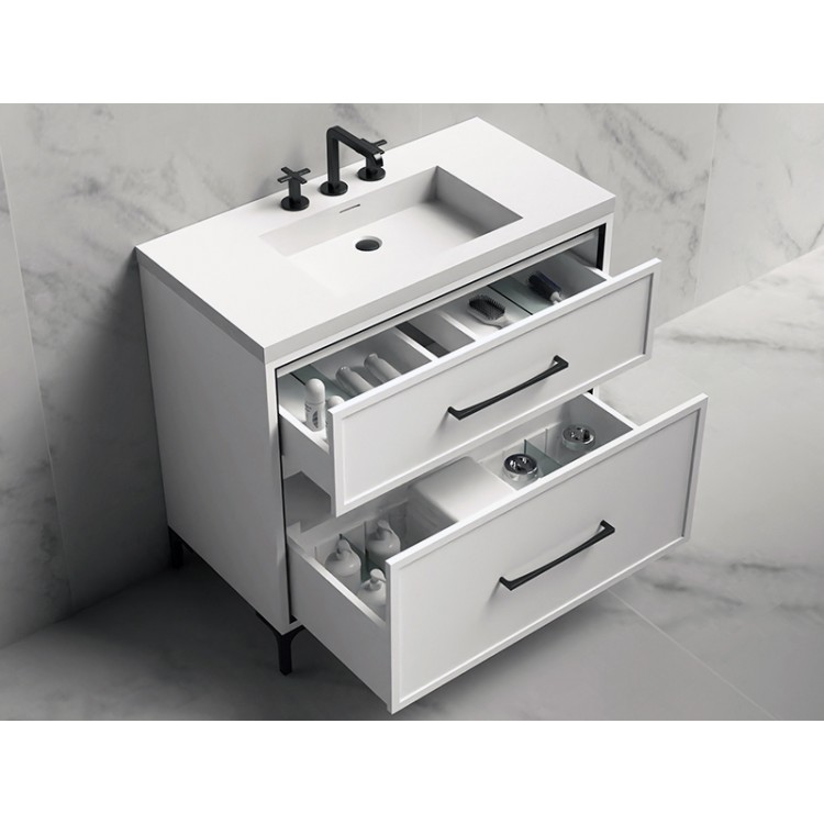Crafted from solid wood, these drawers feature meticulous dovetail corners and a warm, inviting appearance. They are available exclusively with Natural Oak and Natural Walnut finish vanities.
